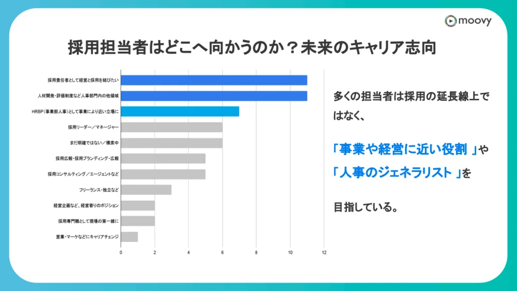 なので、「今の段階でキャリアがはっきり決まっていない=遅れている」というわけでは全くありません。しかし、その一方で、残りの多くの採用担当者は、自分なりのキャリア志向を持っていることも分かりました。
