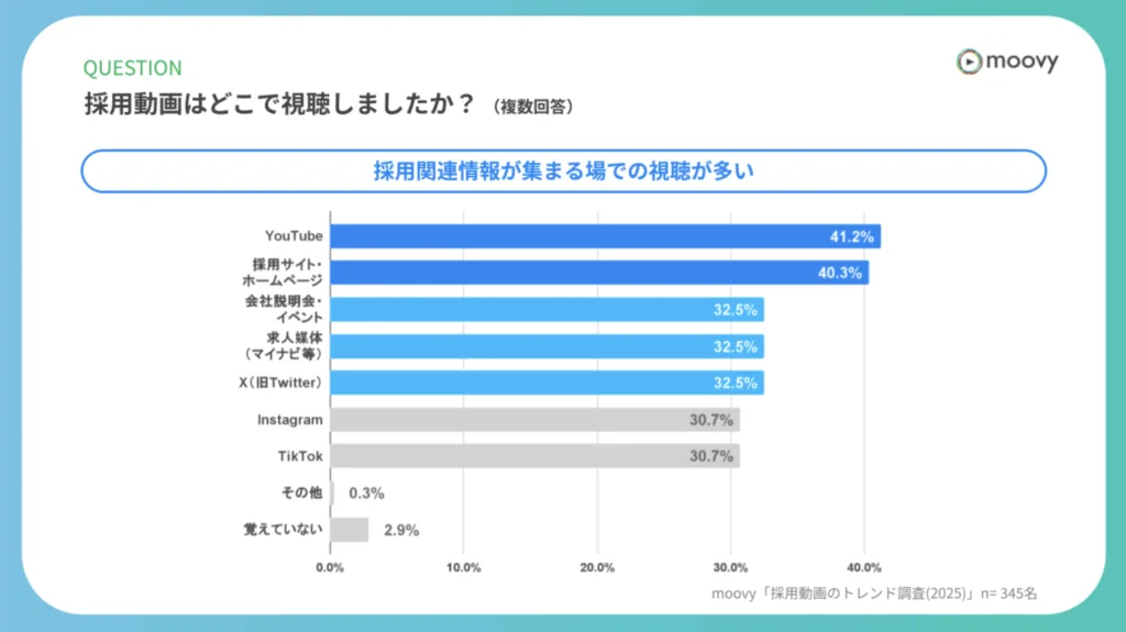 実際、弊社が実施した、「採用動画をどこで見たか」という調査によると