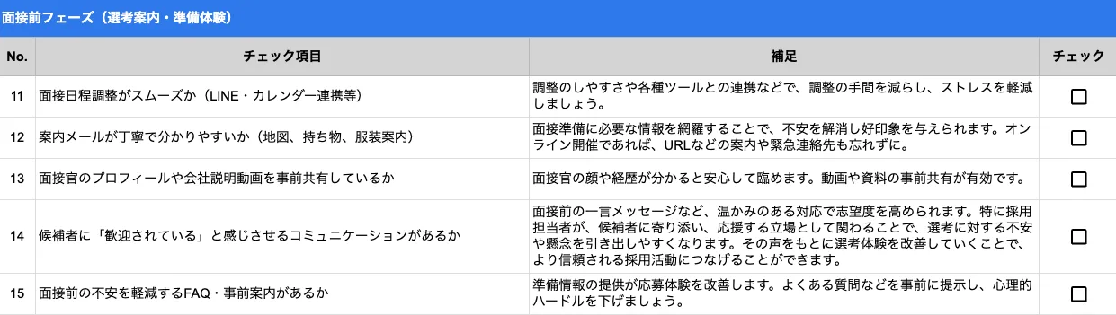 候補者体験改善チェックリスト